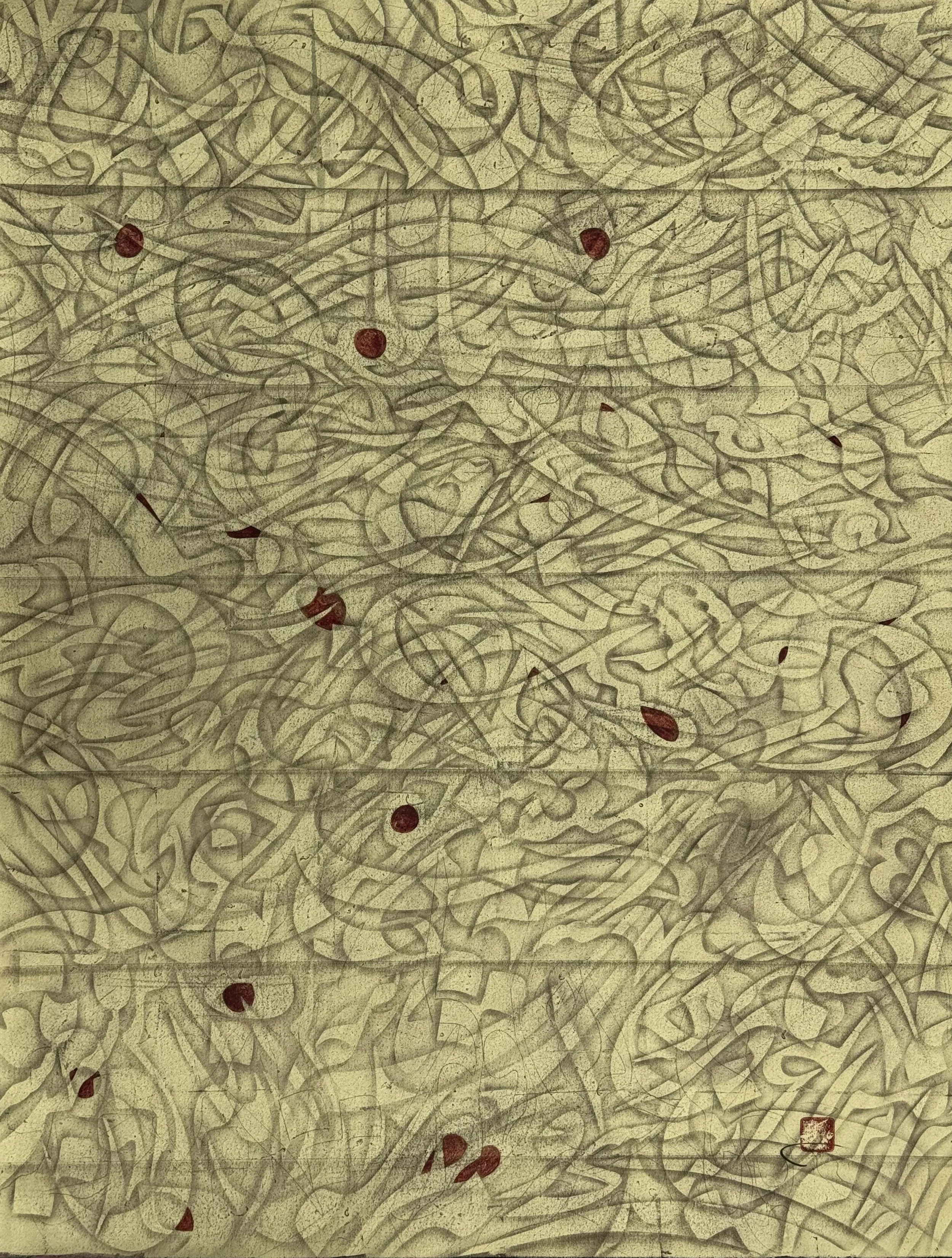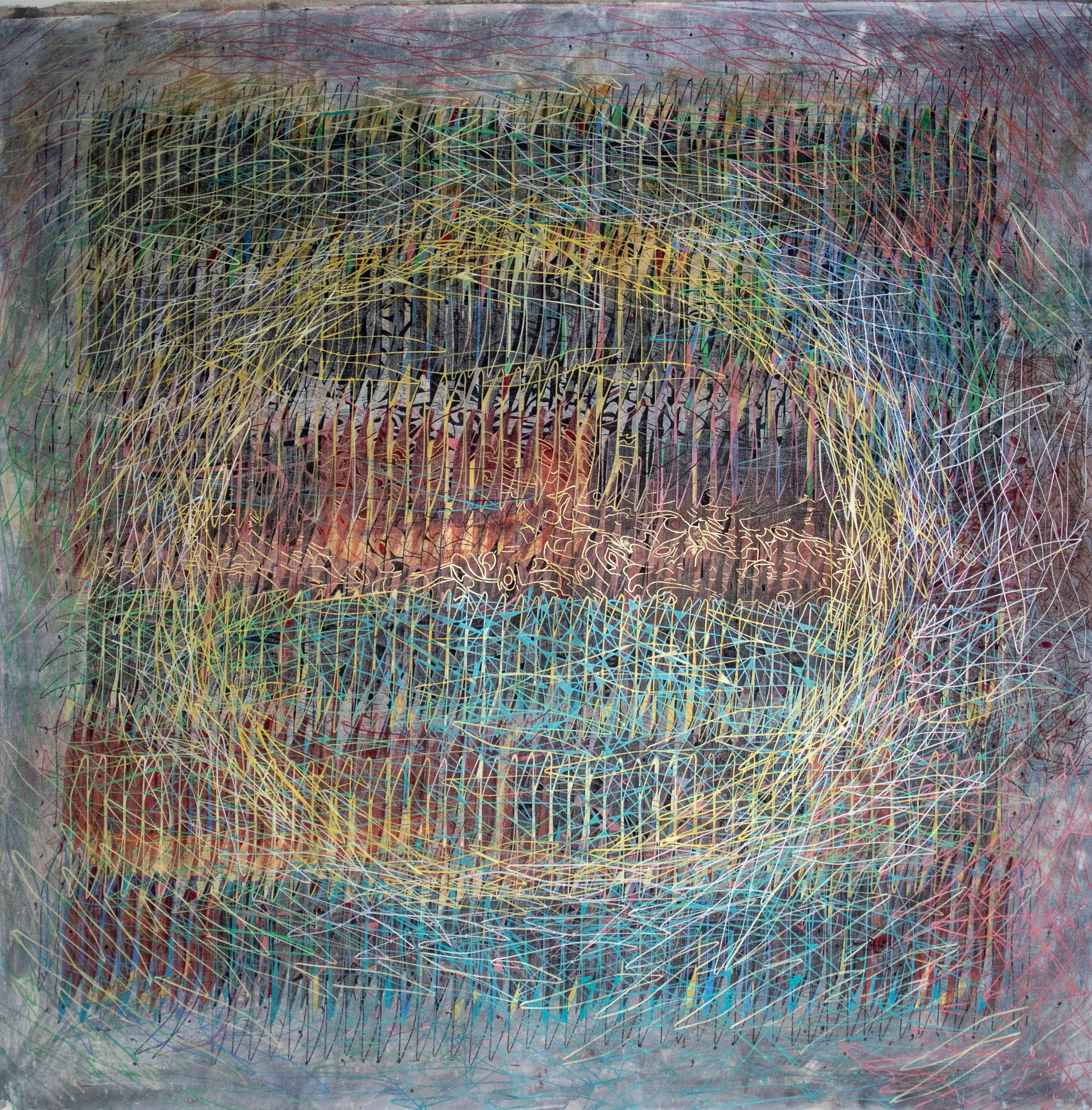 ALEF, 2026 80 x 80 inches Acrylic, Japanese ink and gold leaf on canvas
